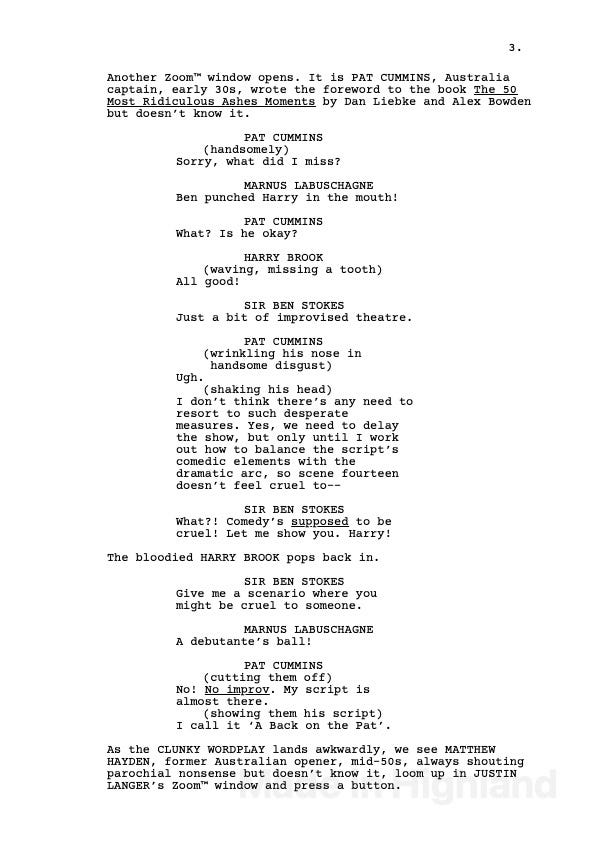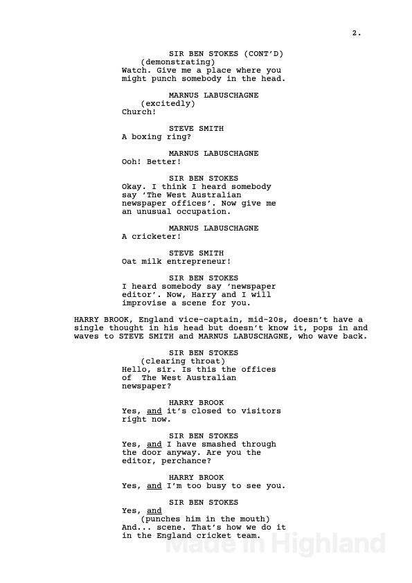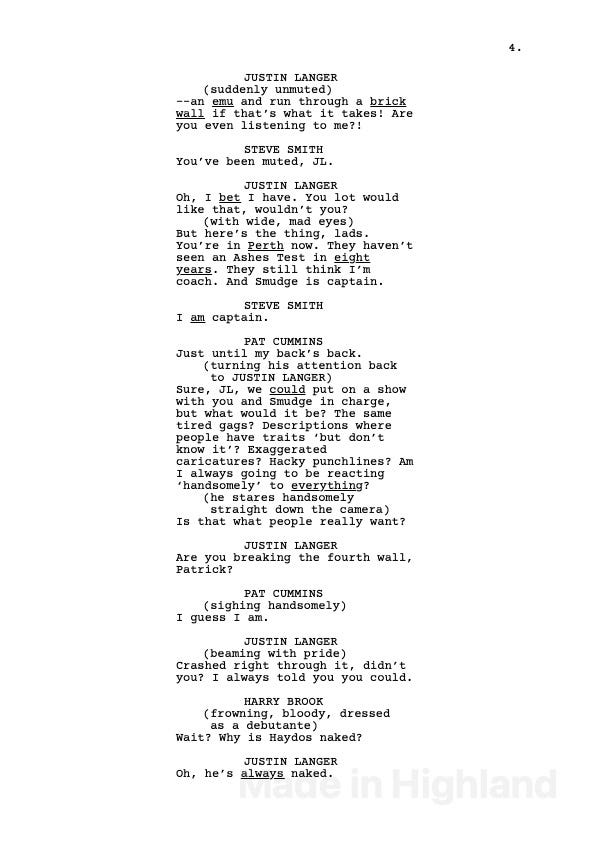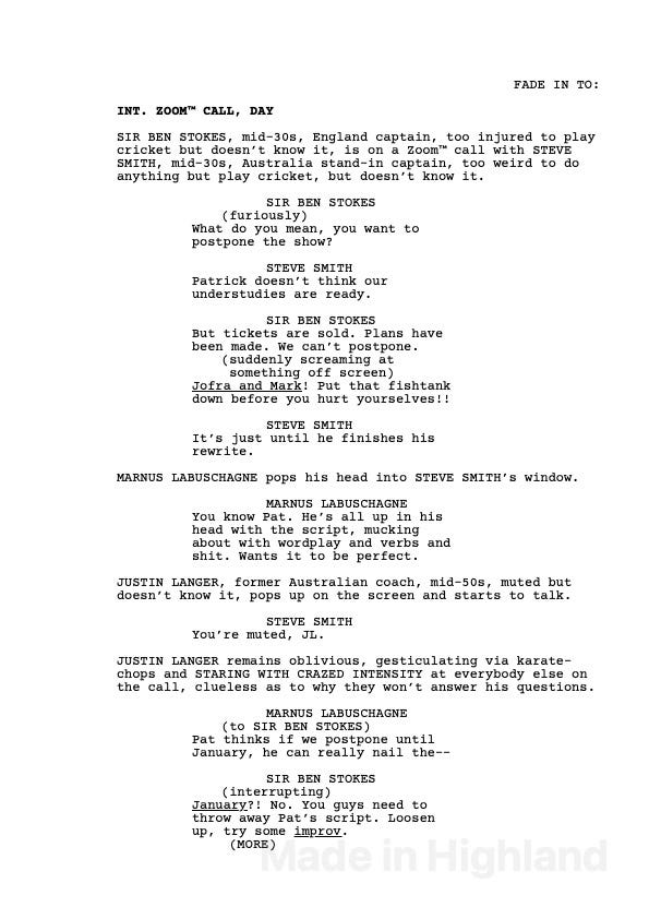 Those of you who’ve been paying attention to me for a while - and, y’know, apologies if that’s the case - might recall that for the last three Ashes series I’ve written a ‘screenplay’, in which I recap each day’s events in the form of exaggerated parodic nonsense.