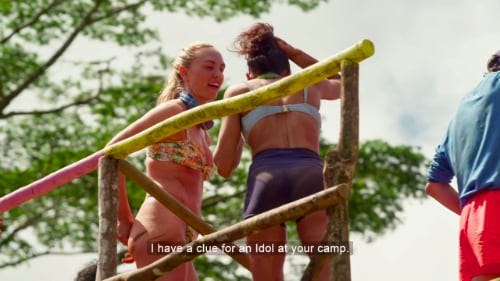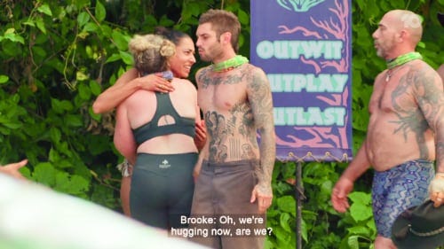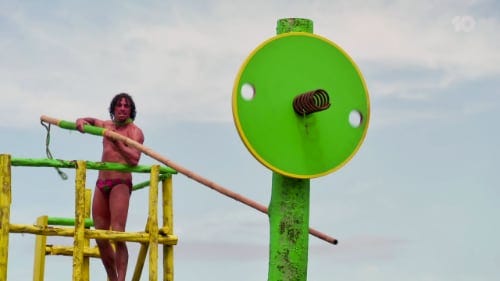 What’s Harry pondering? We’ll never know. Because now it’s time for a reward challenge, the highlight of which is Brooke and Lyndl’s shambolic attempt to swap their idols. They take multiple aborted attempts but finally get there in the end.