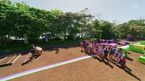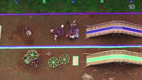 So the teams are split into two tribes and run their first challenge to determine their names. (“Oh, no,” winces Daniel. “There’s going to be names?!?”) It’s a classic Australian Survivor contest of Heavy Block Pyramid Puzzle Trolley Push’n’Flame™.