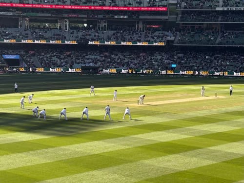 What we saw was Ben Stokes winning the toss and choosing to bowl on a green MCG pitch that had been left with an ominous ten millimetres of grass on top of it. That’s a centimetre to you and me. If you stacked two hundred of these MCG pitches on top of one another, you’d have grass as tall as Cameron Green! Talk about a green top!