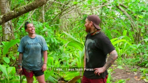 After Tony’s shoenanigans from the night before, the remaining World tribe members come together and promise that when the merge comes, they’ll all stick together to defeat the Aussies.