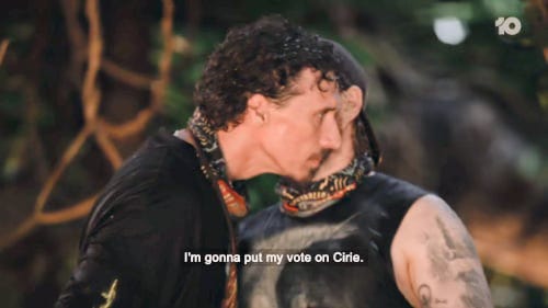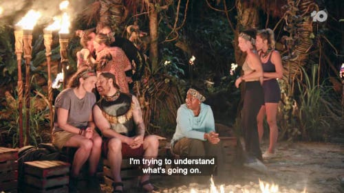 Luckily, JLP makes up some new quitting rules on the spot (‘if you quit, Lisa, you can’t be on the jury, we’ll still vote anyway, and also, uh, Survivor: New Zealand will be taken off the 10Play app’ ‘Wait. Survivor: New Zealand is on the 10Play app??’ ‘No. But if it was, we’d take it off’). So Lisa stays, and after a whole heap more whispers, Tommi inexplicably goes.