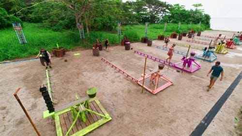 But now it’s time for the actual immunity challenge. A classic game of Bucket Holed Block Towers!