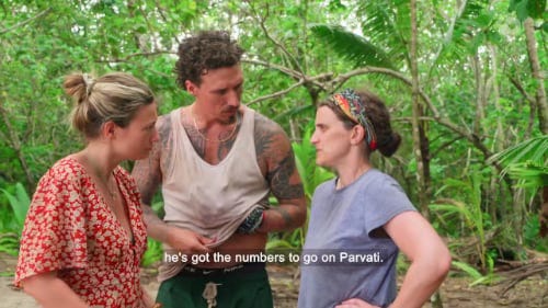 Tommi decides he wants to target Parv, and tries to rally the numbers. Lisa, in turn, drags in her fellow Australians, telling them that Parvati is the target and that they should all vote for her, but, by the way, she isn’t going to.