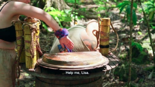 Anyway, as pointed out in my World Tribe preview, Parvati is especially strong at this challenge, famously having held her arm above her head for six hours straight, like the most annoying know-it-all student imaginable. She helps talk Lisa through it, while Tony holds onto an extra 5kg throughout most of the challenge.