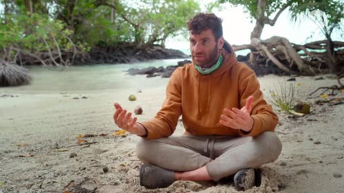 Lots of good questions. But, alas, when he runs out of questions several hours into the shelter reconstruction, Myles starts filling in time by recapping for the original Brawn members the first six episodes before the swap, including the entire breakdown of every single Brains vote, like some kind of overly chatty Ally-type character.