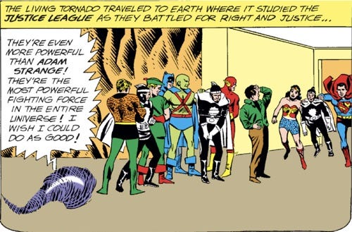 ‘They’re even more powerful than Adam Strange’. Boy, talk about damning with faint praise, Tornado Champion.