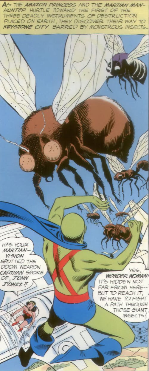 When Xandor, the king of Dryanna, discovers his number one warrior, Carthan, is ‘hella invulnerable’, he comes up with a confusing scheme to exile him to Earth, along with three magic boxes. In a monumentally confusing page and a half of exposition, Xandor explains that Carthan can leave Earth, but the boxes will blind him if he does, but also if he removes the covering of the boxes, he won’t go blind, but all life on Earth will be destroyed. Also, the aura that gives him his invulnerability also means he can’t reveal to the JLA his situation. Look, it's all absurdly contrived, but in the process of the JLA eventually sorting everything out and helping the hapless Carthan go home, new Justice League member Green Arrow does get encased in a giant lead egg. So it's not all bad.