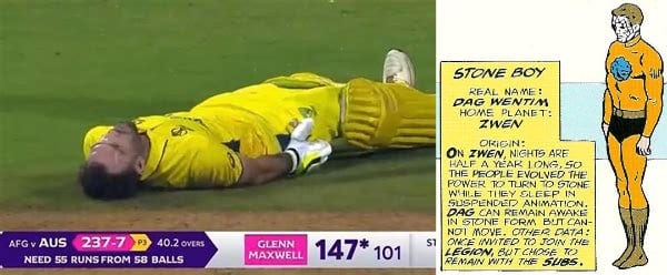 But, like all Maxwellball, there were other elements beyond even the double century and the leglessness that gave the innings extra comedic charm.