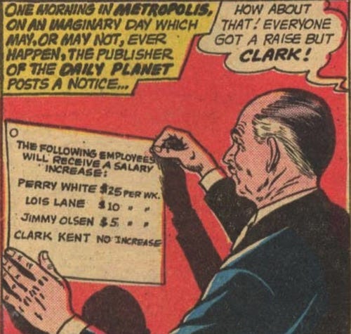 It’s This Unnamed Publisher of the Daily Planet. Now, this is how you motivate your employees - by publicly announcing their salary increases (or otherwise). FFS, even Jimmy got a raise, Clark!