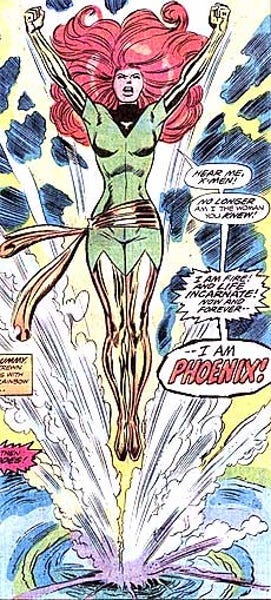 At the end of last issue, Jean sacrificed herself to save the rest of the X-Men. But did she? Did she really? Of course not. Because scant seconds after the others crash land their space shuttle, Jean emerges from the ocean. She sprouts a typically verbose and exclamation mark-laden explanation (“Hear me, X-Men! No longer am I the woman you knew! I am fire! And life incarnate! Now and forever I am Phoenix!”) before the effort of her Claremontian monologue causes her to lose consciousness